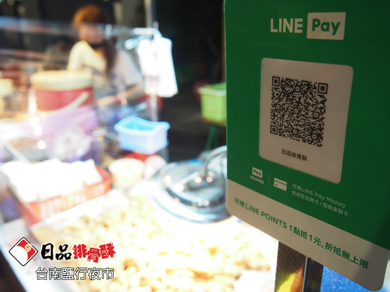 日品排骨酥在鹽行夜市的創業夥伴很用心,可以使用LINE Pay來購買,還會很貼心的放一包面紙。